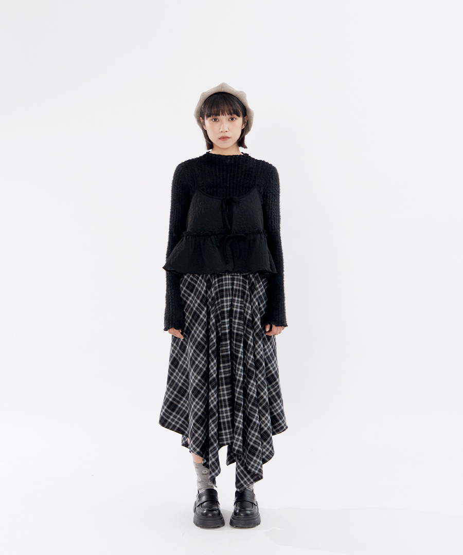 Tシャツやキャミソールと合わせて、フェミニンにもカジュアルにも着こなせる。