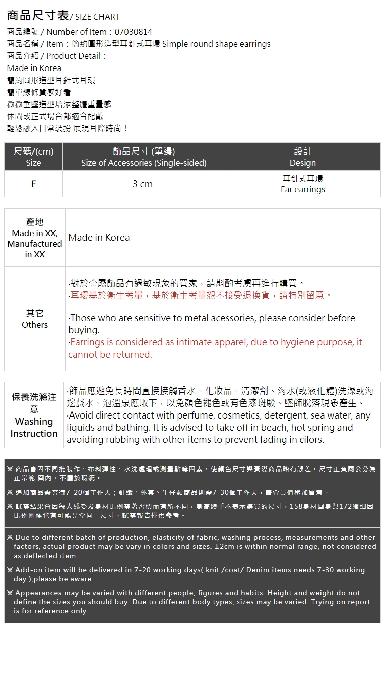 簡約圓形造型耳針式耳環