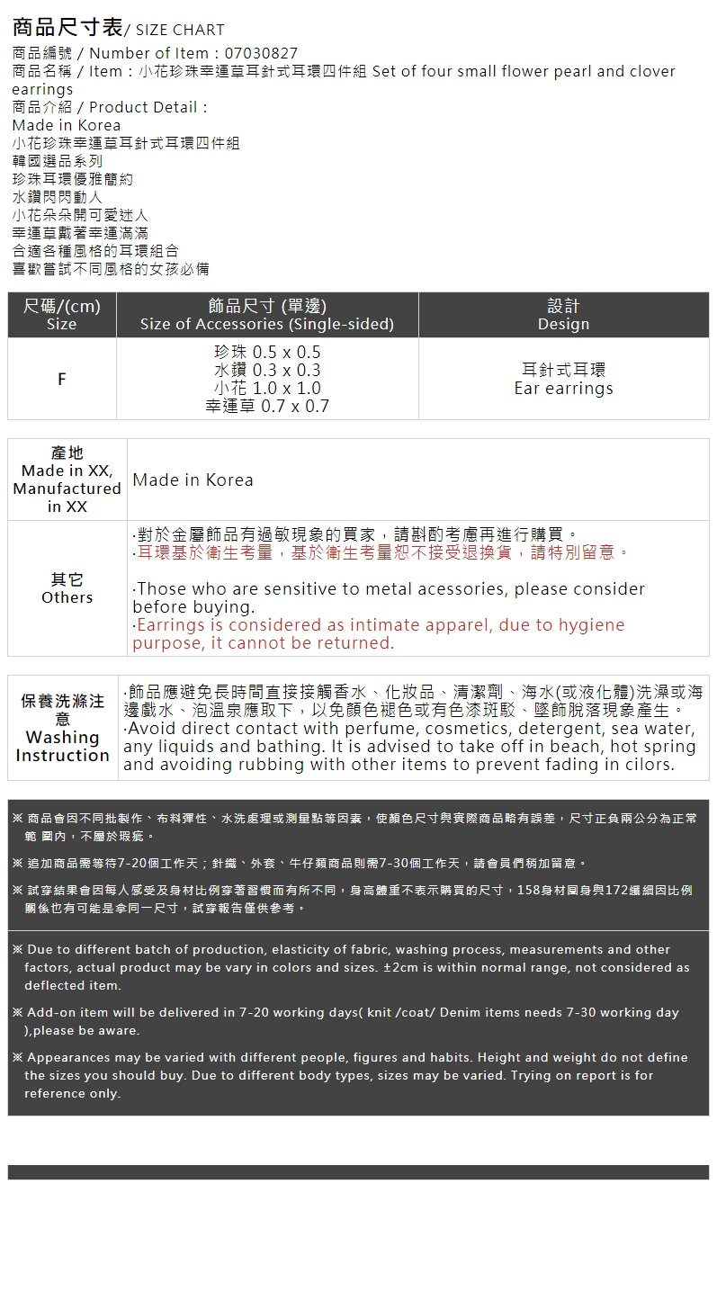 小花珍珠幸運草耳針式耳環四件組