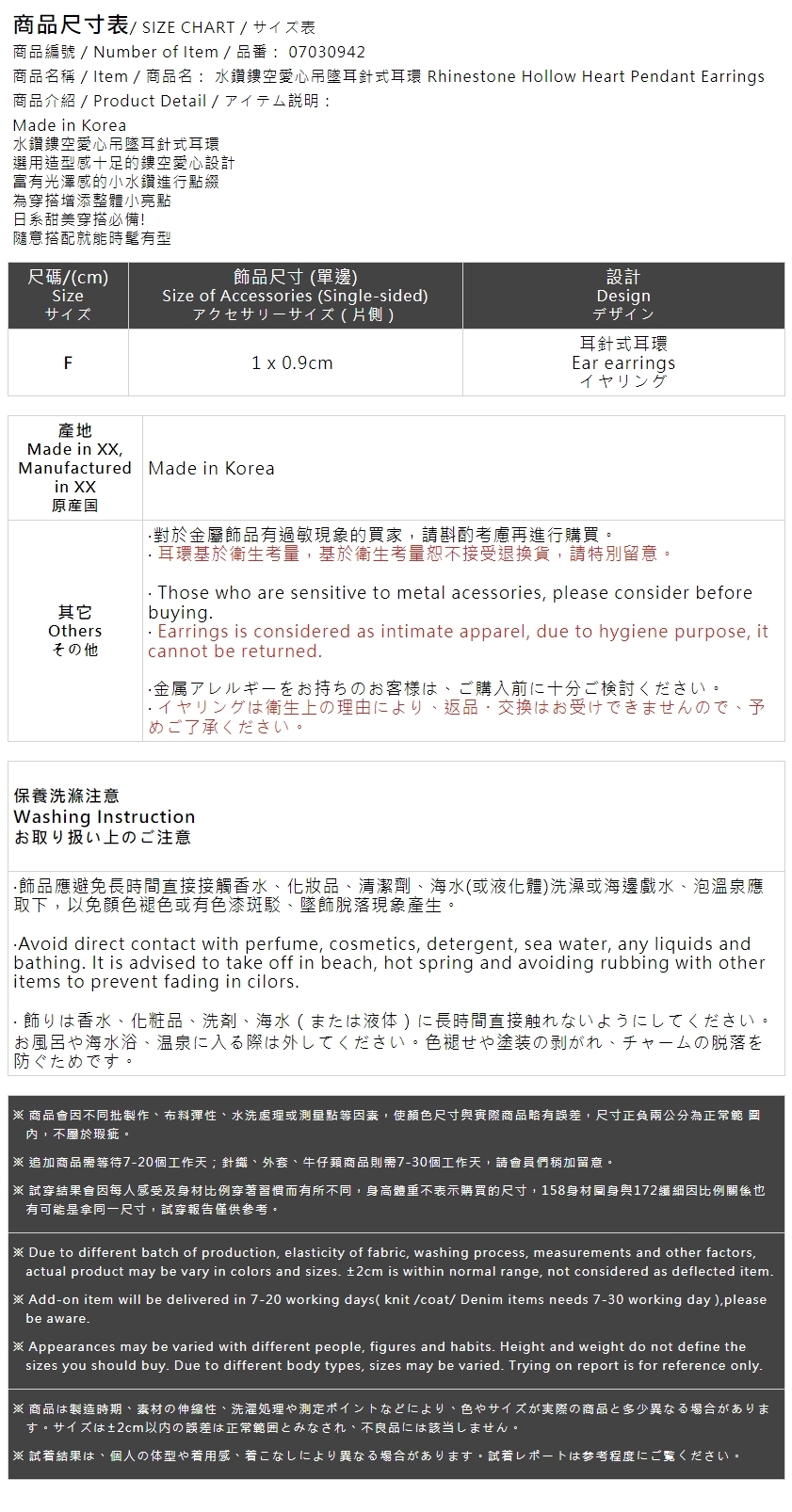 水鑽鏤空愛心吊墜耳針式耳環