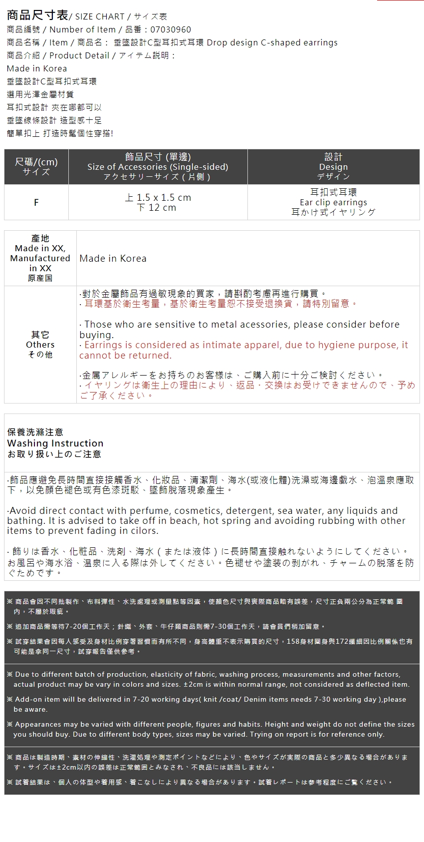 垂墜設計C型耳扣式耳環