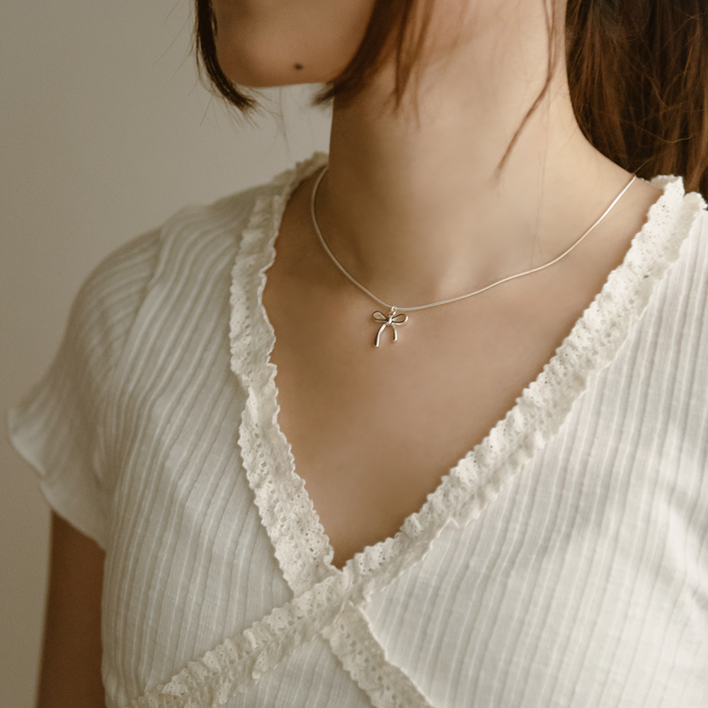 細蛇骨鍊條小蝴蝶結項鍊