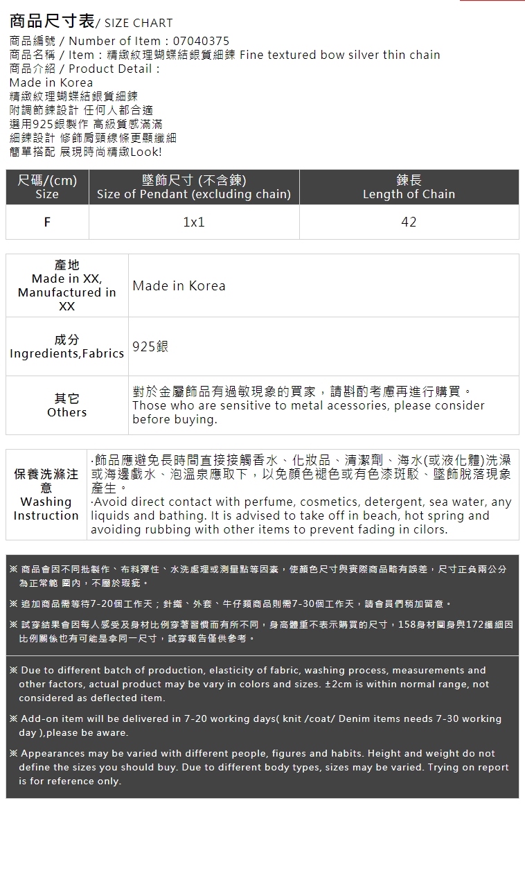 精緻紋理蝴蝶結銀質細鍊