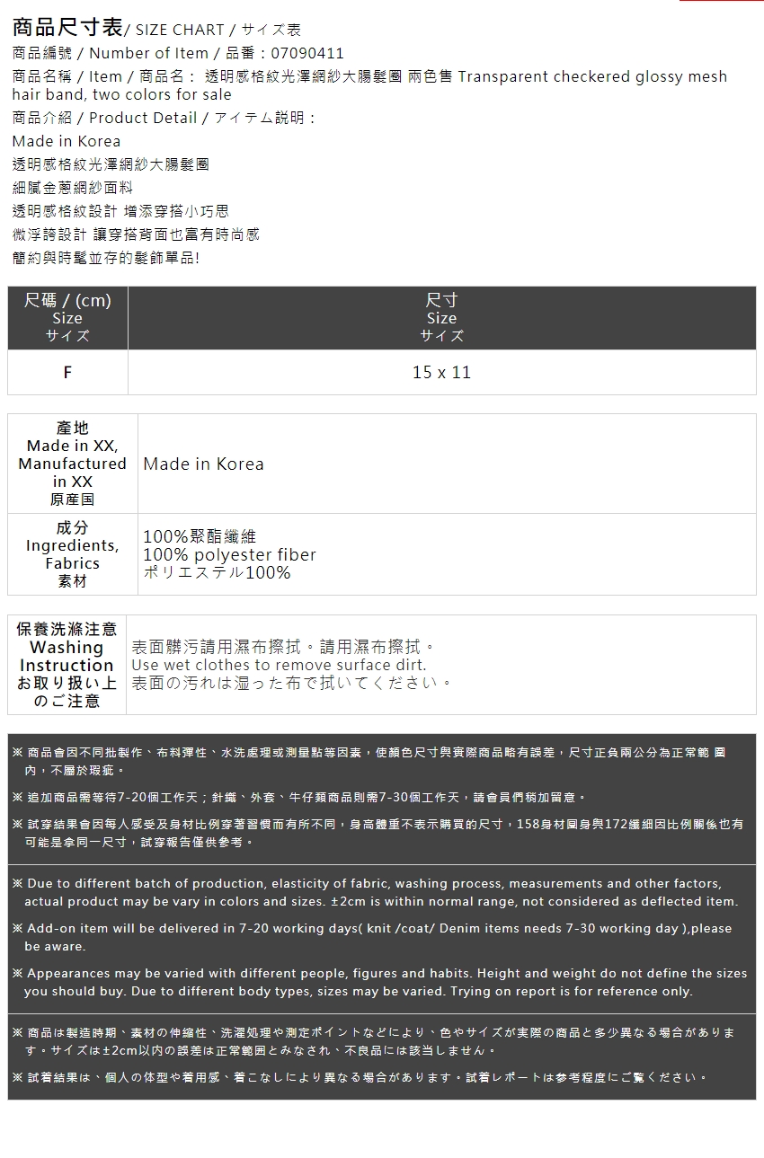 透明感格紋光澤網紗大腸髮圈